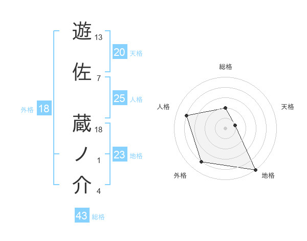 遊佐 蔵ノ介さんの天格は20画の1点!
