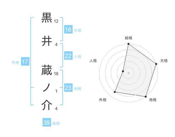 黒井 蔵ノ介さんを姓名の画数から五運を鑑定
