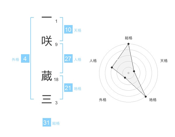 一咲 蔵三さんを姓名の画数から五運を鑑定