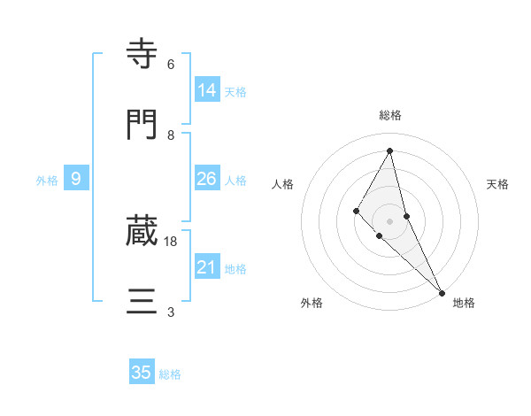 寺門 蔵三さんを姓名の画数から五運を鑑定