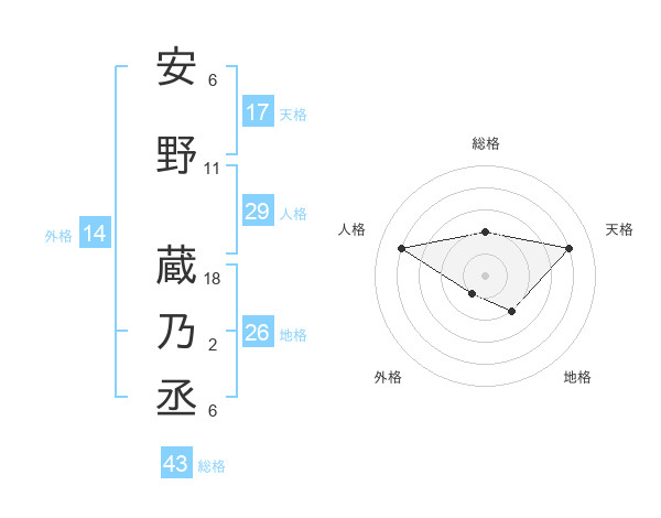 安野 蔵乃丞さんを姓名の画数から五運を鑑定