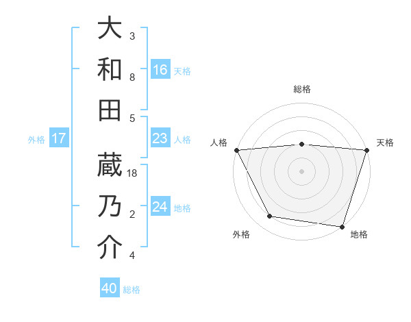 大和田 蔵乃介さんを姓名の画数から五運を鑑定