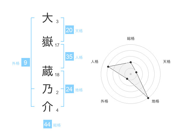 大嶽 蔵乃介さんを姓名の画数から五運を鑑定