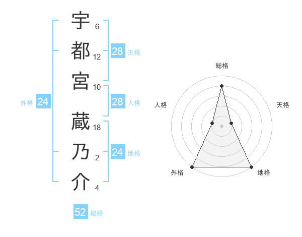 宇都宮 蔵乃介さんの総格は52画の4点!