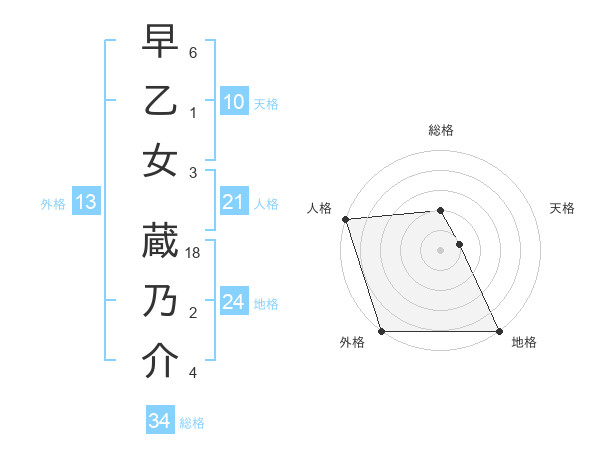 早乙女 蔵乃介さんを姓名の画数から五運を鑑定