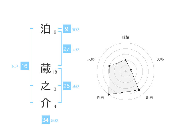 泊 蔵之介さんの地格は25画の4点!