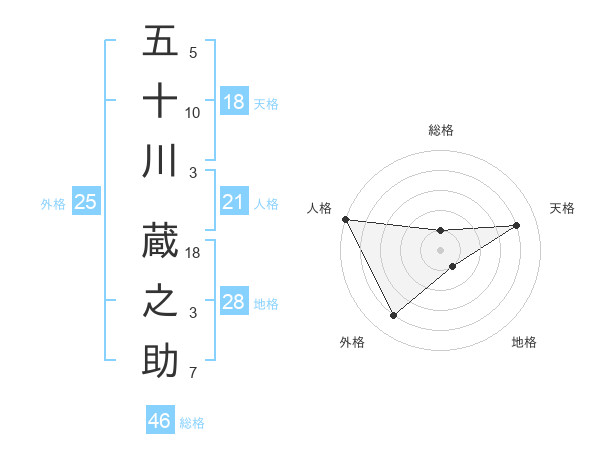 五十川 蔵之助さんを姓名の画数から五運を鑑定