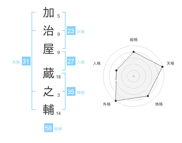 加治屋 蔵之輔さんを姓名の画数から五運を鑑定