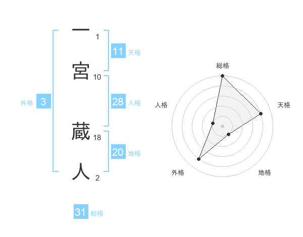 一宮 蔵人さんの総格は31画の5点!