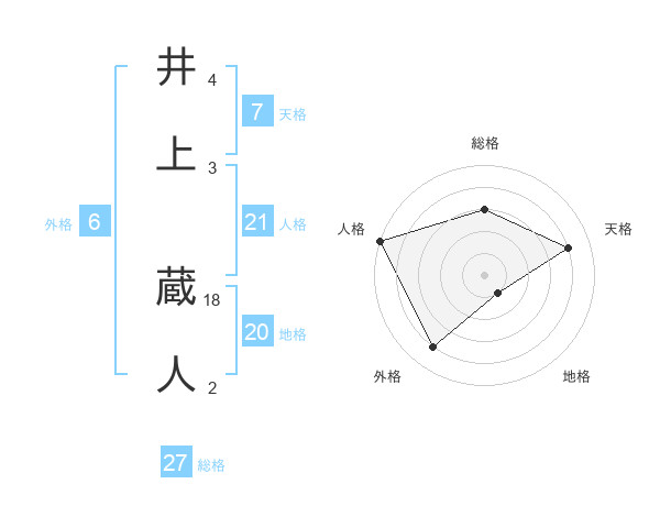 井上 蔵人さんを姓名の画数から五運を鑑定