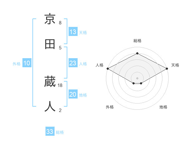 京田 蔵人さんの天格は13画の5点!