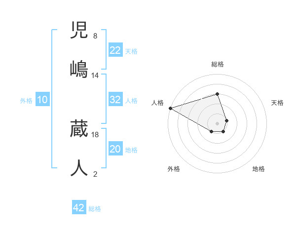 児嶋 蔵人さんの総格は42画の3点!