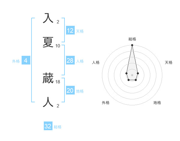 入夏 蔵人さんを姓名の画数から五運を鑑定
