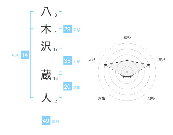 八木沢 蔵人さんの総格は49画の2点!