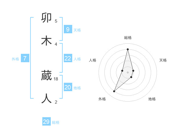 卯木 蔵人さんの総格は29画の4点!