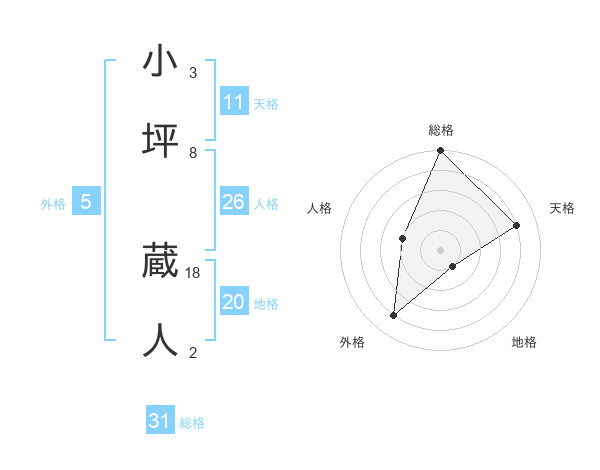 小坪 蔵人さんの総格は31画の5点!