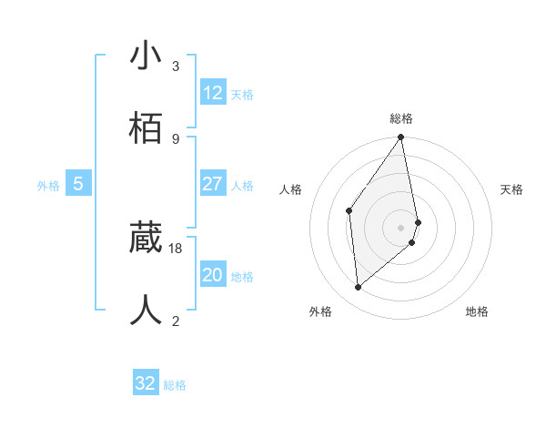 小栢 蔵人さんの総格は32画の5点!