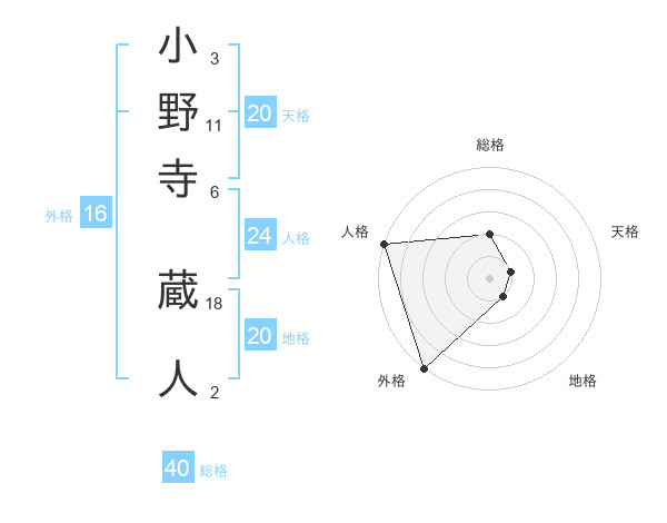 小野寺 蔵人さんを姓名の画数から五運を鑑定