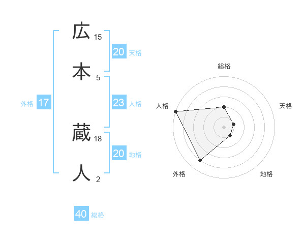 広本 蔵人さんを姓名の画数から五運を鑑定