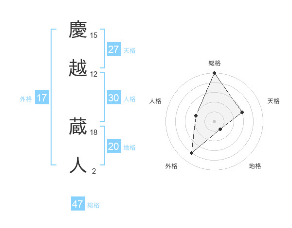 慶越 蔵人さんを姓名の画数から五運を鑑定