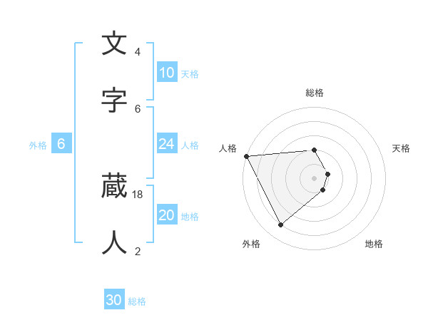 文字 蔵人さんの総格は30画の2点!