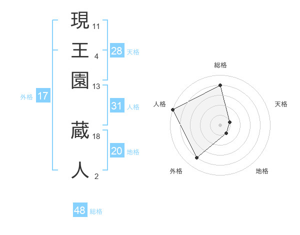 現王園 蔵人さんを姓名の画数から五運を鑑定