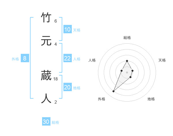 竹元 蔵人さんの総格は30画の2点!