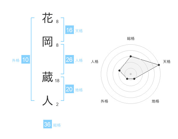 花岡 蔵人さんの天格は16画の5点!