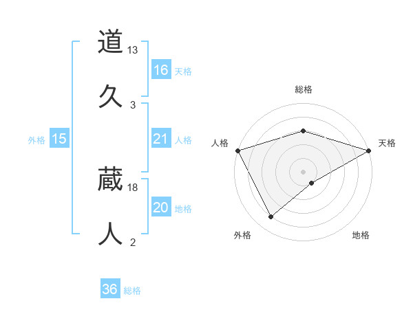 道久 蔵人さんの天格は16画の5点!