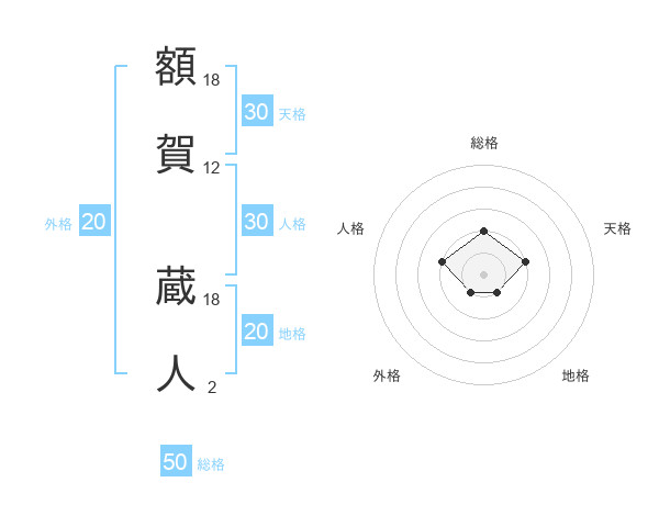 額賀 蔵人さんの総格は50画の2点!