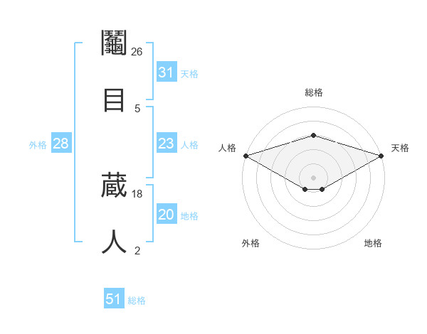鬮目 蔵人さんを姓名の画数から五運を鑑定