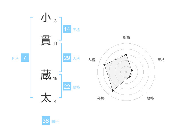 小貫 蔵太さんの外格は7画の4点!