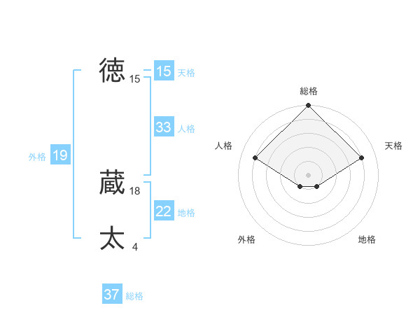 徳 蔵太さんの総格は37画の5点!