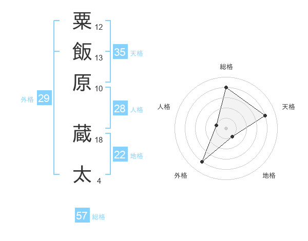 粟飯原 蔵太さんの総格は57画の4点!