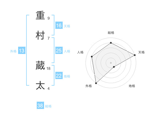 重村 蔵太さんを姓名の画数から五運を鑑定