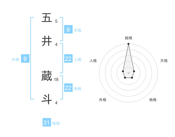 五井 蔵斗さんの総格は31画の5点!
