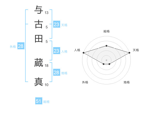 与古田 蔵真さんを姓名の画数から五運を鑑定
