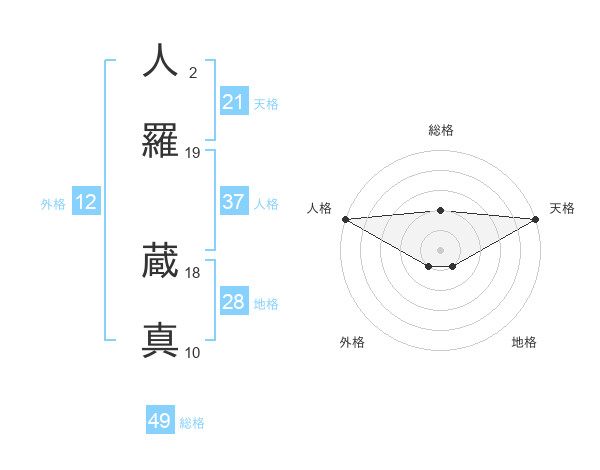 人羅 蔵真さんの天格は21画の5点!