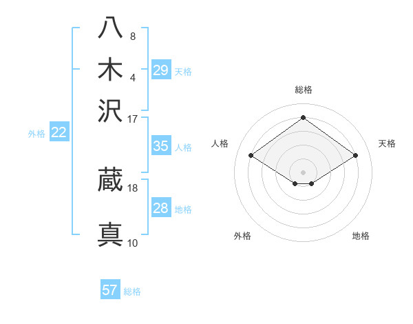 八木沢 蔵真さんの総格は57画の4点!