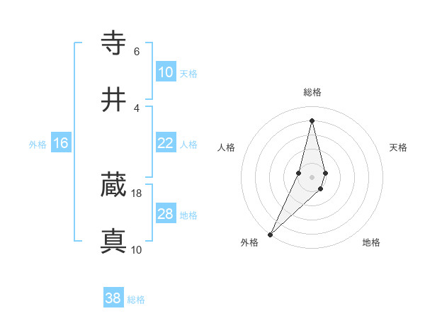 寺井 蔵真さんの総格は38画の4点!