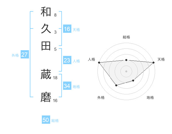 和久田 蔵磨さんの総格は50画の2点!