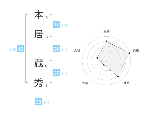 本居 蔵秀さんを姓名の画数から五運を鑑定