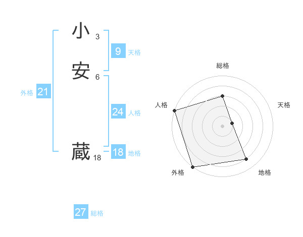 小安 蔵さんの総格は27画の3点!