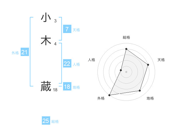 小木 蔵さんの外格は21画の5点!