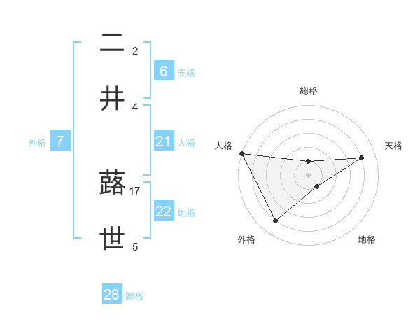 二井 蕗世さんを姓名の画数から五運を鑑定