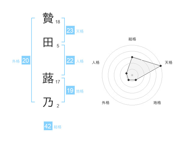 贄田 蕗乃さんを姓名の画数から五運を鑑定