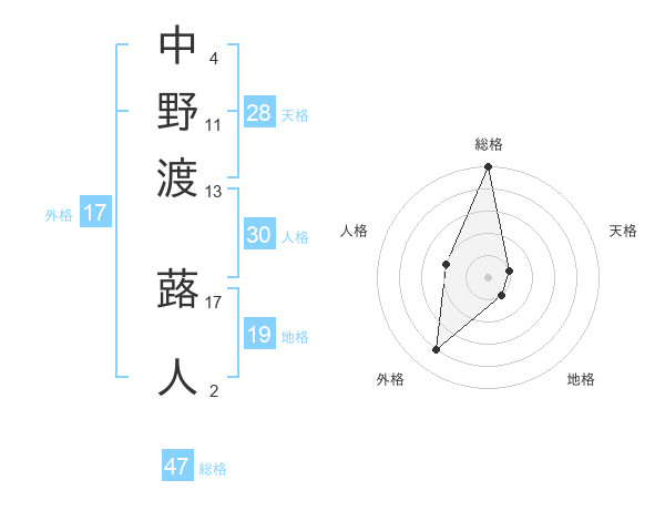 中野渡 蕗人さんの総格は47画の5点!