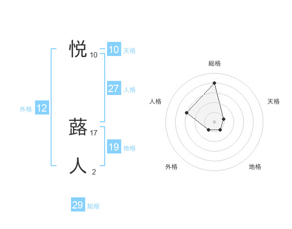 悦 蕗人さんの総格は29画の4点!