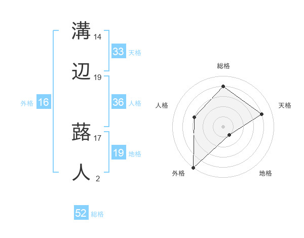 溝辺 蕗人さんの総格は52画の4点!