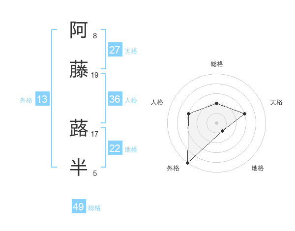 阿藤 蕗半さんの外格は13画の5点!